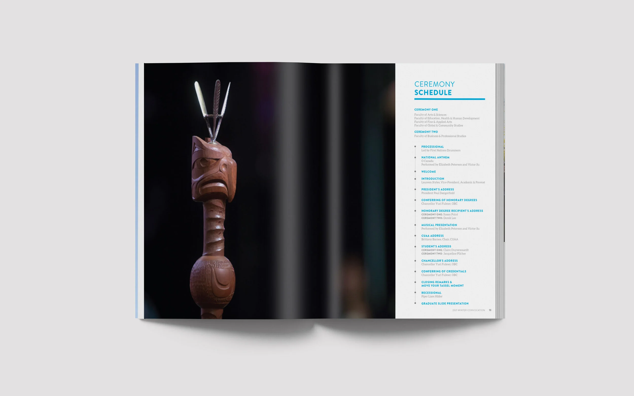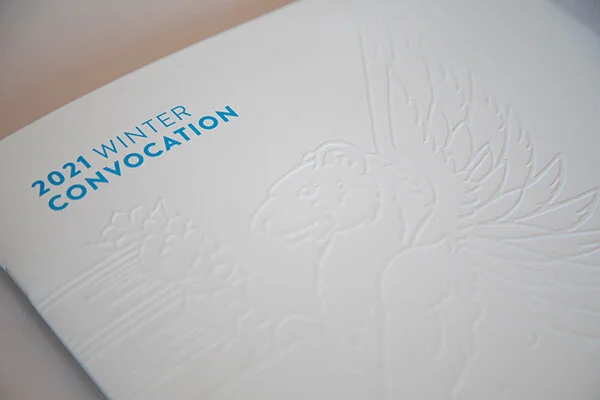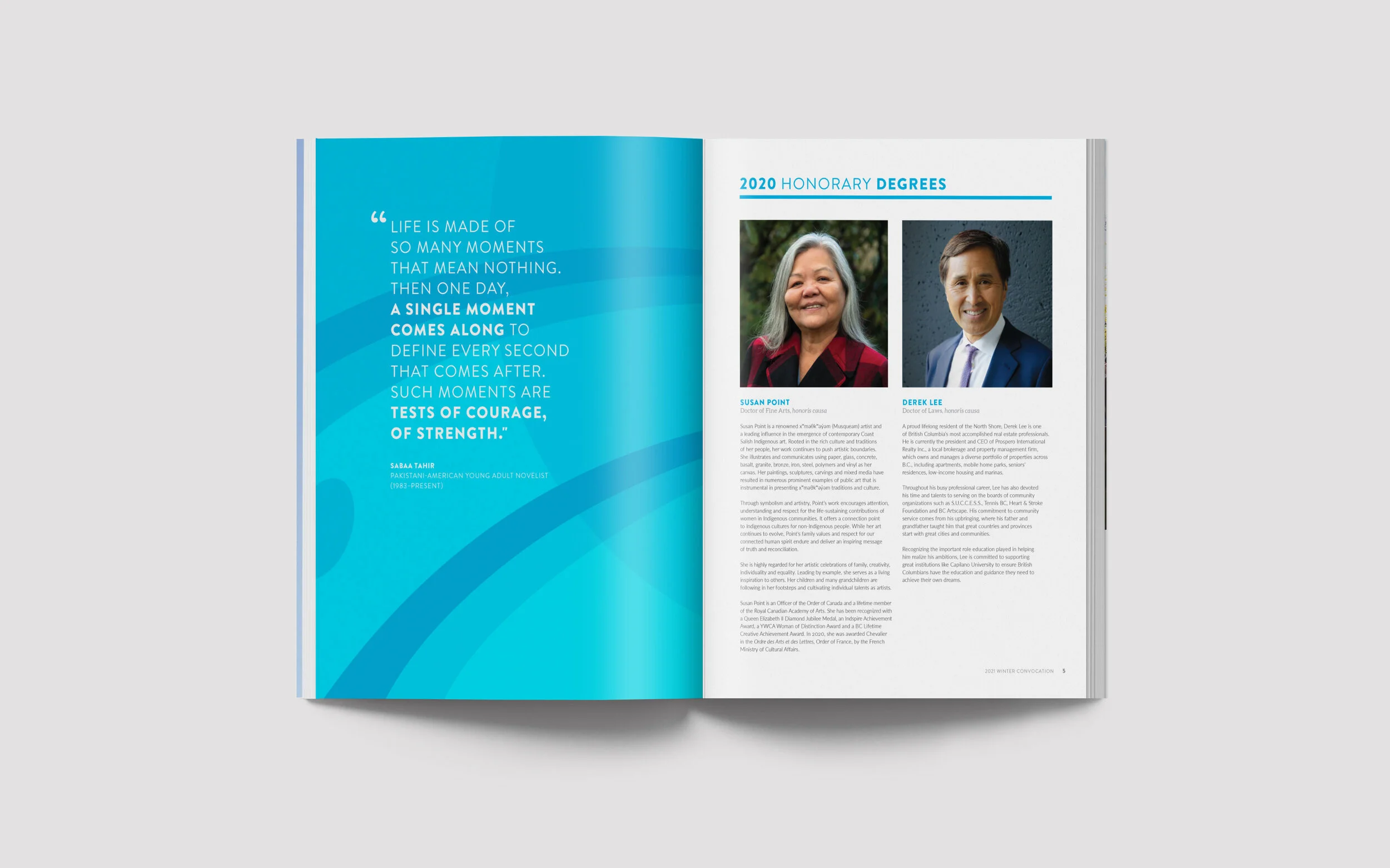 How do you create a memorable experience for students who cannot attend an in-person graduation ceremony? We designed CapU’s 2021 Winter Convocation Program as a keepsake for graduands, along with a box of special items to commemorate the occasion. With so few printed materials being produced at the time, it was important to put extra care into our stock and finishing options.